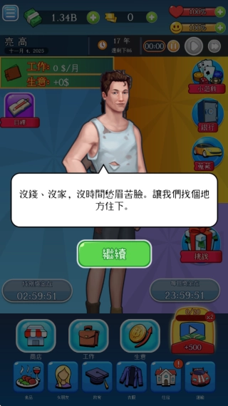 现在我们要助力身无分文的主角实现逆袭,帮他寻觅住所、谋求职业,再借助学习来增强各项能力,一步步迈向成功的人生!