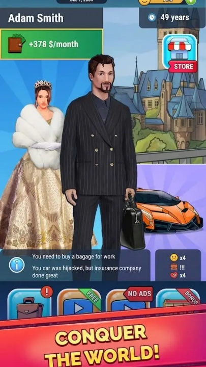 在这款无所事事的生活模拟游戏里,你得从一个穷困潦倒的失业者起步。为了活下去,你得四处奔波,找些底层工作挣钱买吃的。接着一步步往上爬,在这个生活模拟器中走出一条从贫穷到富有的道路。要为你的虚拟人生做出正确选择,要是想成为银行家、当上亿万富翁,就得选对路,不然你的虚拟人生最后可能会流落街头忍饥挨饿。这款游戏能让你学到在现实世界里可以做出的那些选择。