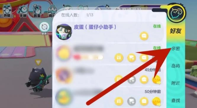 1、在游戏内打开好友列表,点击右侧的【亲密】。