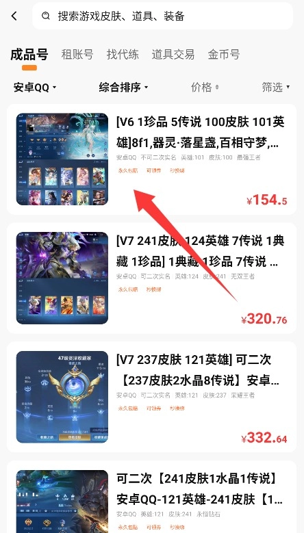 2、账号查找与筛选:通过分类、推荐或关键词搜索定位目标账号,高级筛选支持段位、皮肤数量、英雄池等条件。