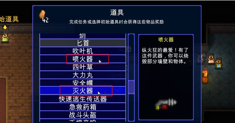 2、玩家需先完成任务,挑选初始道具,解锁喷火器与灭火器。