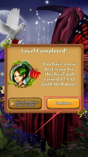 最后,完成关卡后,你可以点击“Continue”按钮继续游戏,也可以选择观看广告来获取额外的金币。