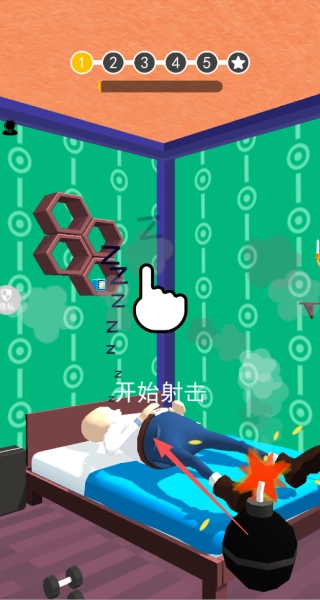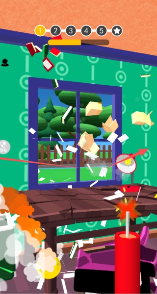我们要利用手里的武器,把关卡场景里的各类物品都摧毁掉,直接点击就可以进行射击。