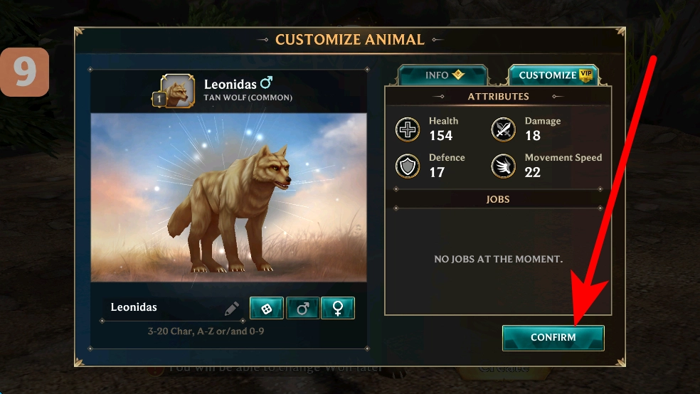 你可以对狼的形象等进行自定义设置,在对应的自定义界面完成各项内容配置后,点击CONFIRM按钮就能确认这些更改,从而打造出专属于你的狼角色。