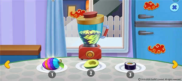 打开榨汁机的操作界面后,桌面上会呈现出可供使用的食材。只需将桌面上的食材拖拽至榨汁机内部即可完成操作。