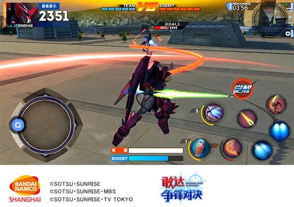 《敢达争锋对决》收录了十余部敢达系列中的机体,忠实还原了宏大世界观里各式各样的武器设定。这一点在游戏中体现为丰富多彩的射击技能——不同机体配备了不同的射击型武器,只需按压屏幕上的「普通射击键」,就能发射主射击武器进行攻击。建议大家提前了解并熟悉自己拥有机体的射击性能,这对完成后续的对战和任务会有很大帮助。