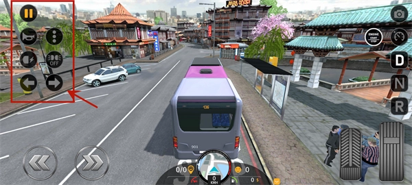 进入游戏后就可以操作,小编在图中为各位小伙伴进行了简单标注,其中D为前进挡,也称驱动挡;N为空挡,暂时停车时(如红灯),注意,此挡位表示空挡,为防止车辆在斜坡上溜动,一定要踩着刹车。R为倒车挡,倒车时用。
