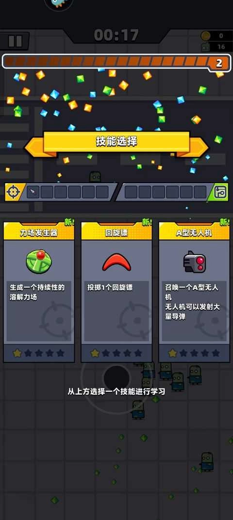 拾取地上的钻石能让等级提升得更快,每升一级就可以学习一个技能。