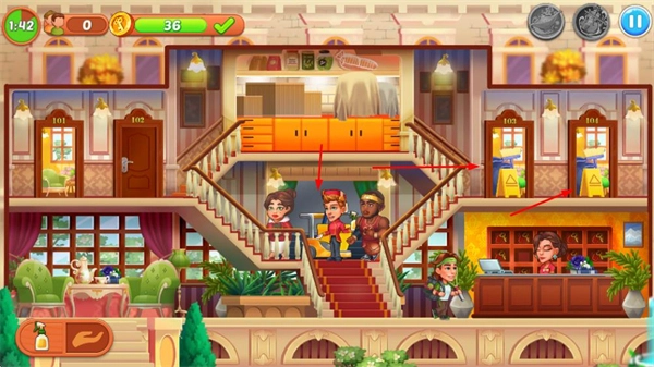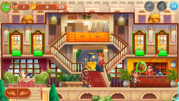 酒店等级提升:通过积累金币、优化服务、升级设施等途径提高酒店等级,等级越高能解锁更多房间类型与服务项目,扩大酒店经营规模,让游戏玩法更丰富。