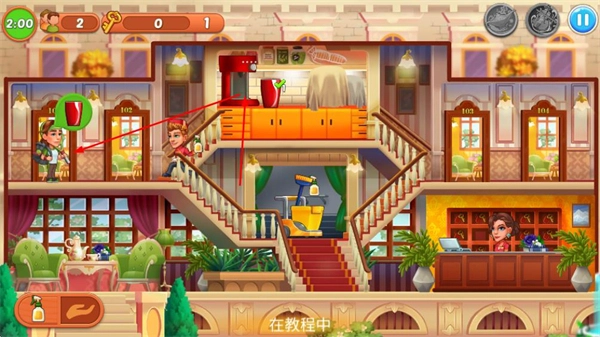 在酒店情境下,和客人进行互动,满足他们的各类需求——像是为客人提供所需的物品或对应的服务,以此推动游戏的进展。