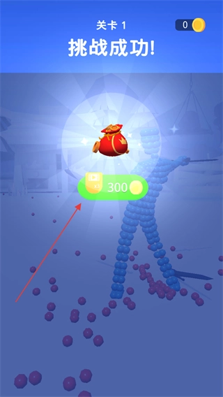 成功战胜敌人后,界面会显示挑战成功的提示,此时点击奖励图标即可领取金币,随后便能进入下一关继续挑战。
