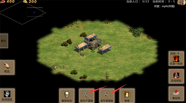 选择好生产建筑和军事建筑后,让农民过去建筑。