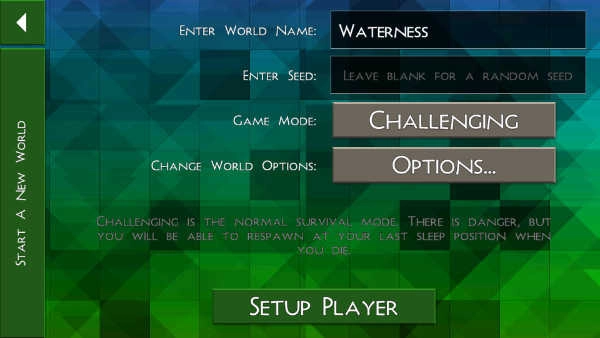 点击“new world”后,我们要对创建的世界进行自定义设置,完成设置后点击“setup player”
