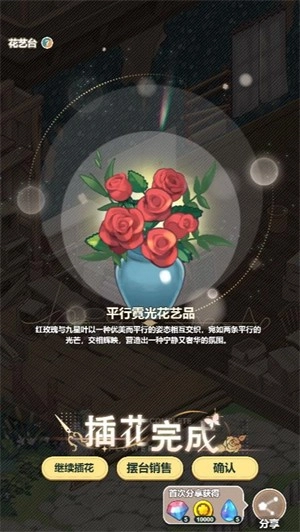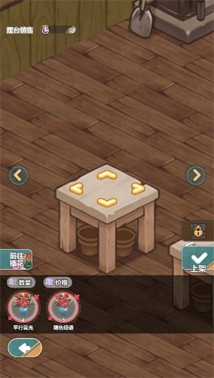 完成插花操作后,可点击店铺内的桌子,将对应的花朵上架。