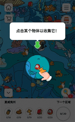 进入关卡后,下方会显示需要寻找的物品数量,只要找齐所有隐藏的物体就能顺利通关。