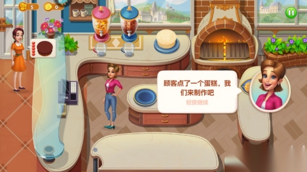 接下来就正式进入游戏环节了,玩家要依据顾客的订单,提供对应的食物,像蛋糕这类。