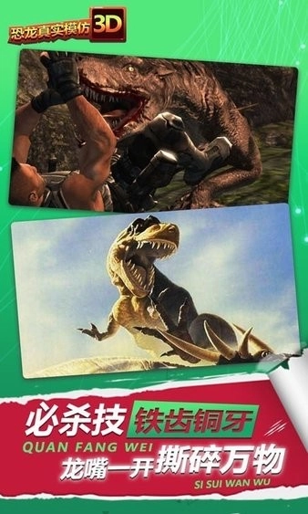 1.采用高度逼真的3D美术风格,让玩家仿佛置身于恐龙世界之中,真切体验到那份真实感与震撼力。