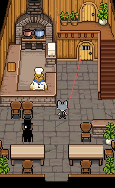 控制角色进入熊先生的餐厅,走到柜台附近的厨师熊先生身边。