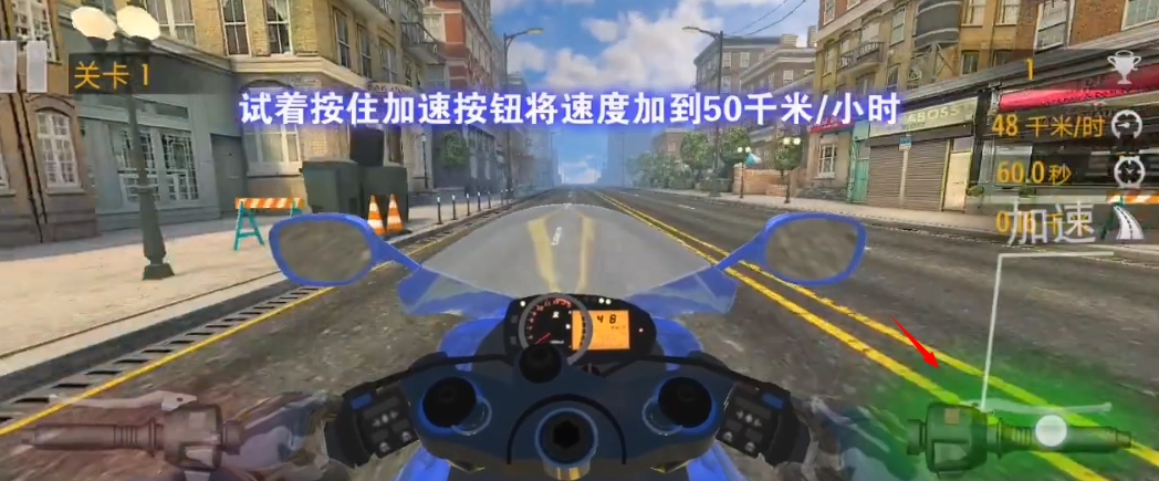 通过长按屏幕的方式来使摩托车进行加速