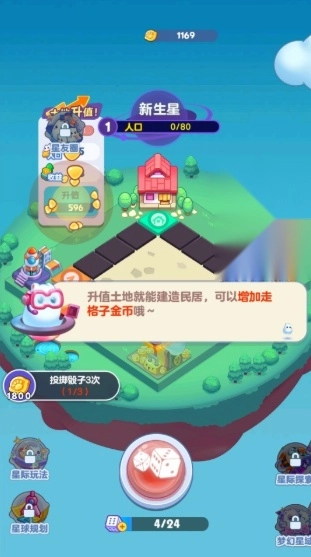 3、升值土地,建造民居,可以增加走格子的金币。
