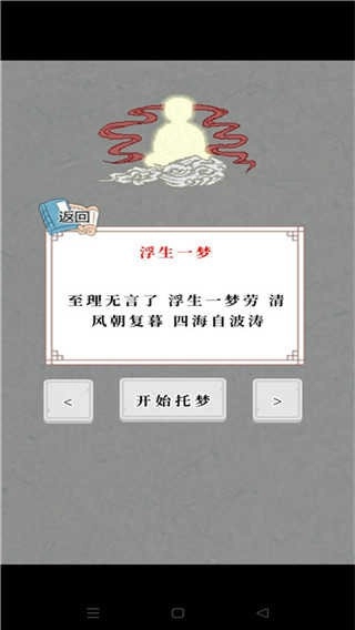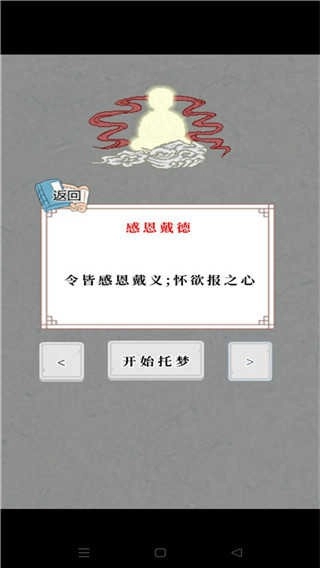 要是存在托梦词,按下【〉】或者【〈】按钮,就会有这样的成语显示出来。