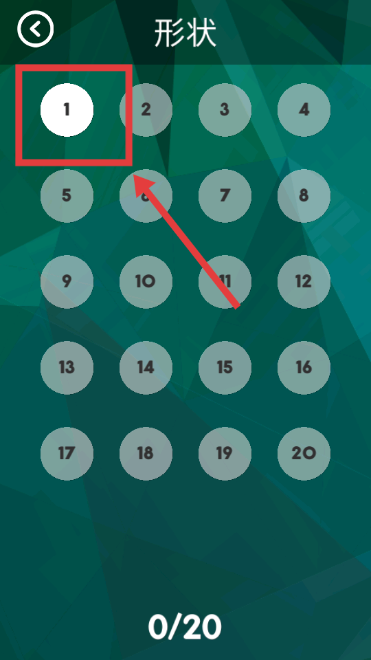 1、进入游戏后在关卡选择界面点击标有数字1的圆形图标,即可进入第一关游戏场景,开始第一关的挑战。