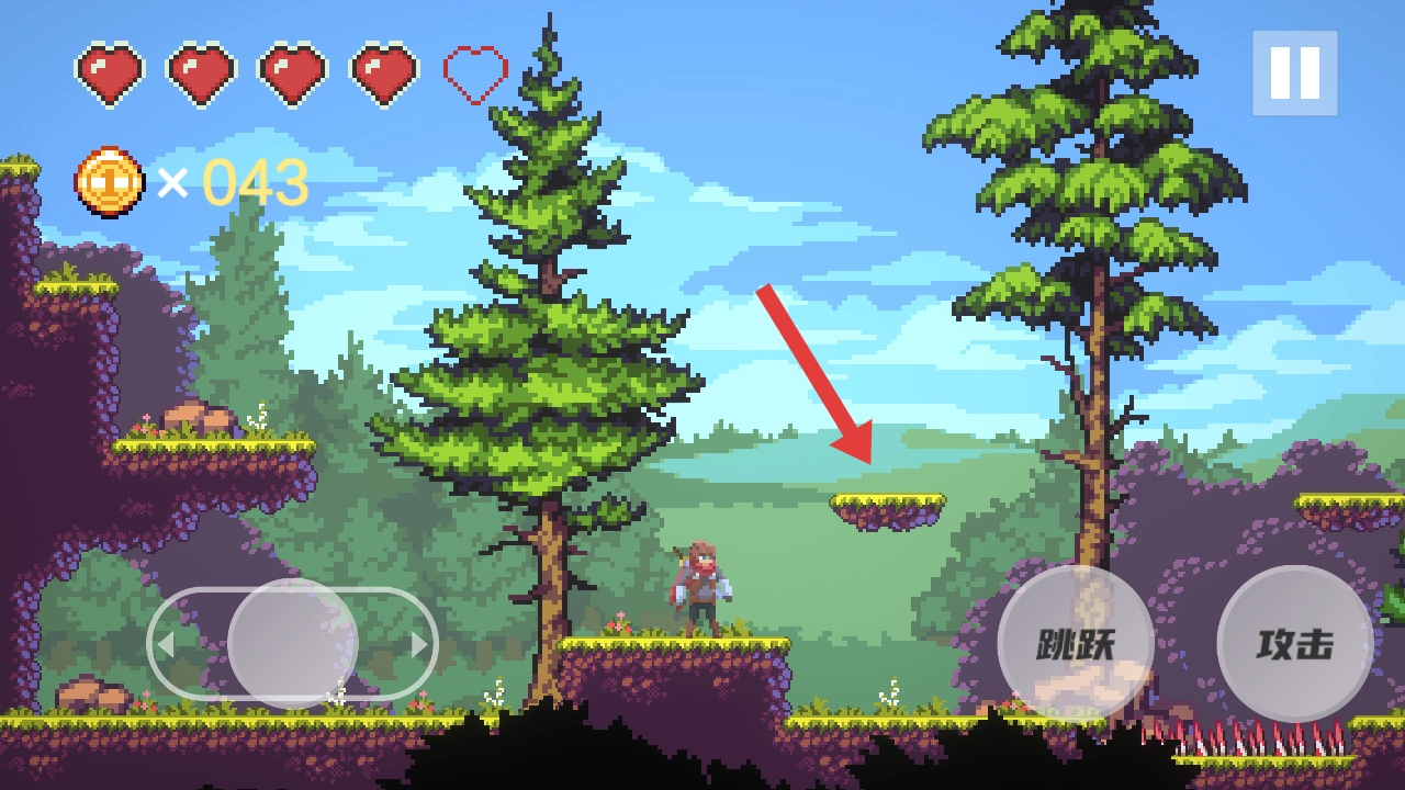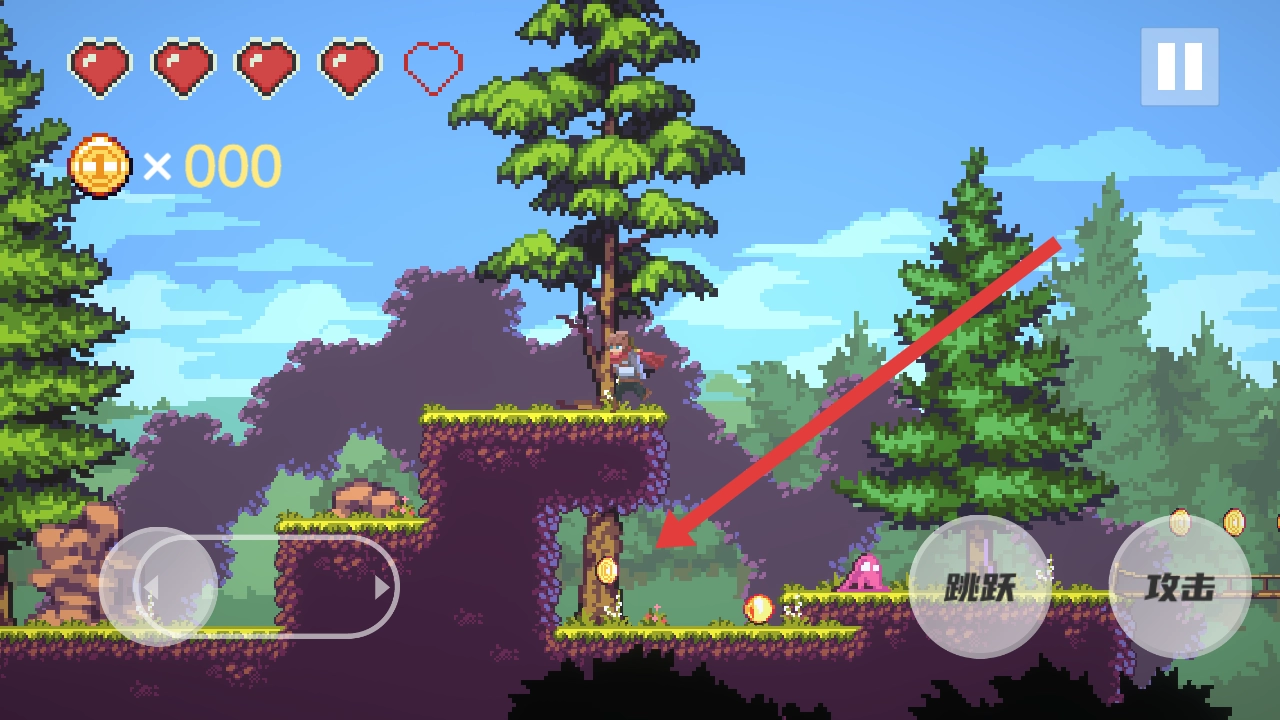 通过操控跳跃按键来跨越地形高低差,要留意下方的怪物和金币,提前规划好角色的移动路线,以便拾取金币并消灭敌人。