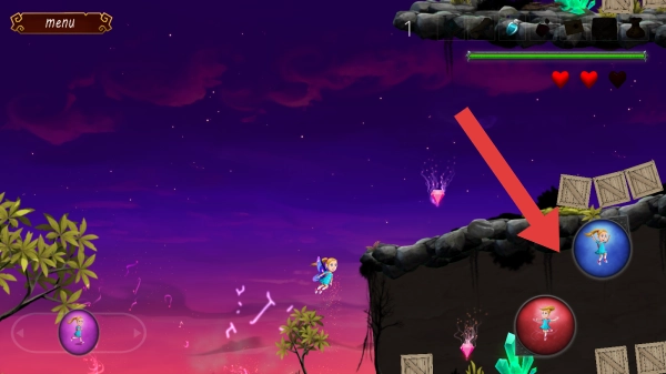 当钻石位于上方位置时,玩家可通过右下角的功能按键来操作,当前剩余生命值为2。