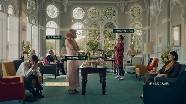 然后你就会来到宴会大厅,你可以与他们逐个对话,根据他们口中的线索进行整合,从而进一步展开行动。