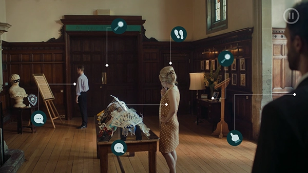 接下来的场景切换到了展厅,玩法依旧是通过和NPC对话来获取线索。