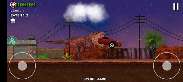 3、通过滑动左侧两侧的摇杆之控制恐龙进行移动。