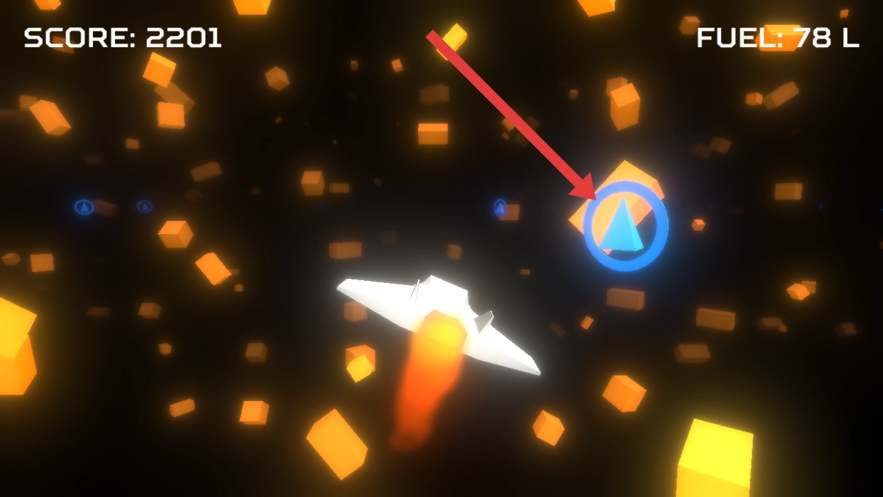 在飞行过程中,要瞄准并拾取红色的环状道具,这类红色道具数量较少,能增加的积分却比较多。