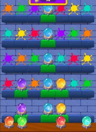 锵锵!本次活动的玩法界面就像图里展示的这样!各位小伙伴们可以随意排列组合不同颜色的魔法球,顺序正确的会被保留下来并标记成绿色,要是顺序错了,魔法球就会当场爆炸,不过会留下对应的颜色标记哦。