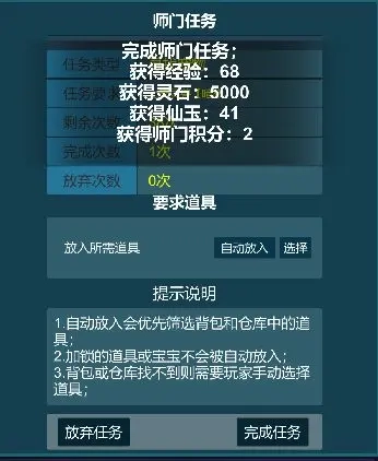 【师门任务】完成师门任务可获得丰厚的经验、灵石、咸鱼奖励,还有种类繁多的物品掉落,因此它是每日必做的重要任务。