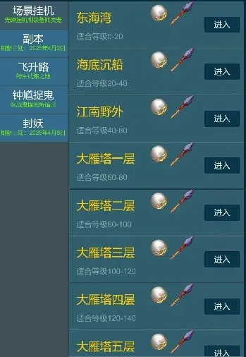【地图】页面是当前可进行战斗的创建界面,其中【场景挂机】的战斗难度最低,会产出少量灵石与经验,并且每场战斗都必定能获得当前转生级别的装备,以及场景怪物对应的灵兽碎片。【副本】的战斗难度处于中等水平,能产出大量灵石和日常消耗类物品,但存在调整次数的限制。【飞升路】的战斗难度同样为中等,主要产出藏宝图和转生所需的必备道具,同时这里也是完成师门任务巡逻环节的战斗场景。【捉鬼】的战斗难度属于中上级别,会大量产出经验和日常消耗物品,捉鬼的层数会对战斗难度产生影响,而每日签到可以重置捉鬼层数。【封妖】的战斗难度相对偏高,主要产出灵石和高级道具,不过有挑战次数的限制。