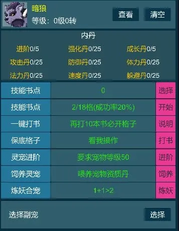 ※师门丹药,提升战斗灵宠的属性。