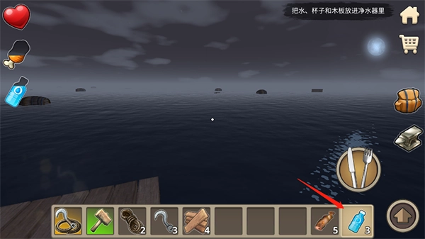 玩家要维持生存,就得时常捕鱼、采摘水果并寻觅淡水,以此保证有足够的食物和水。