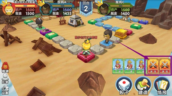 《富豪闯三国》的玩法类似于经典的大富翁棋盘模式,其中自然也包含了大家熟悉的土地交易设定。