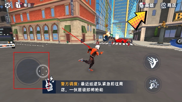 4、地面行动时使用左侧方向控制区域调整方向,跟随警方调度信息前往任务地点抓捕逃犯。