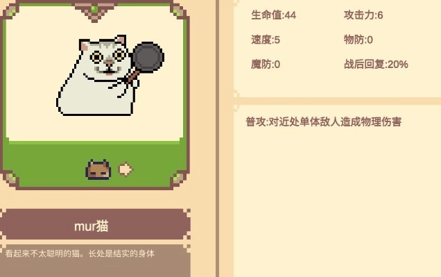 mur猫:普通攻击时,会对近距离范围内的单个敌人造成物理伤害。当达到2星时,它对近处单个敌人造成物理伤害的同时,还会附加嘲讽效果。而升至3星后,其攻击会针对近处的多个敌人造成物理伤害,并且同样施加嘲讽效果。