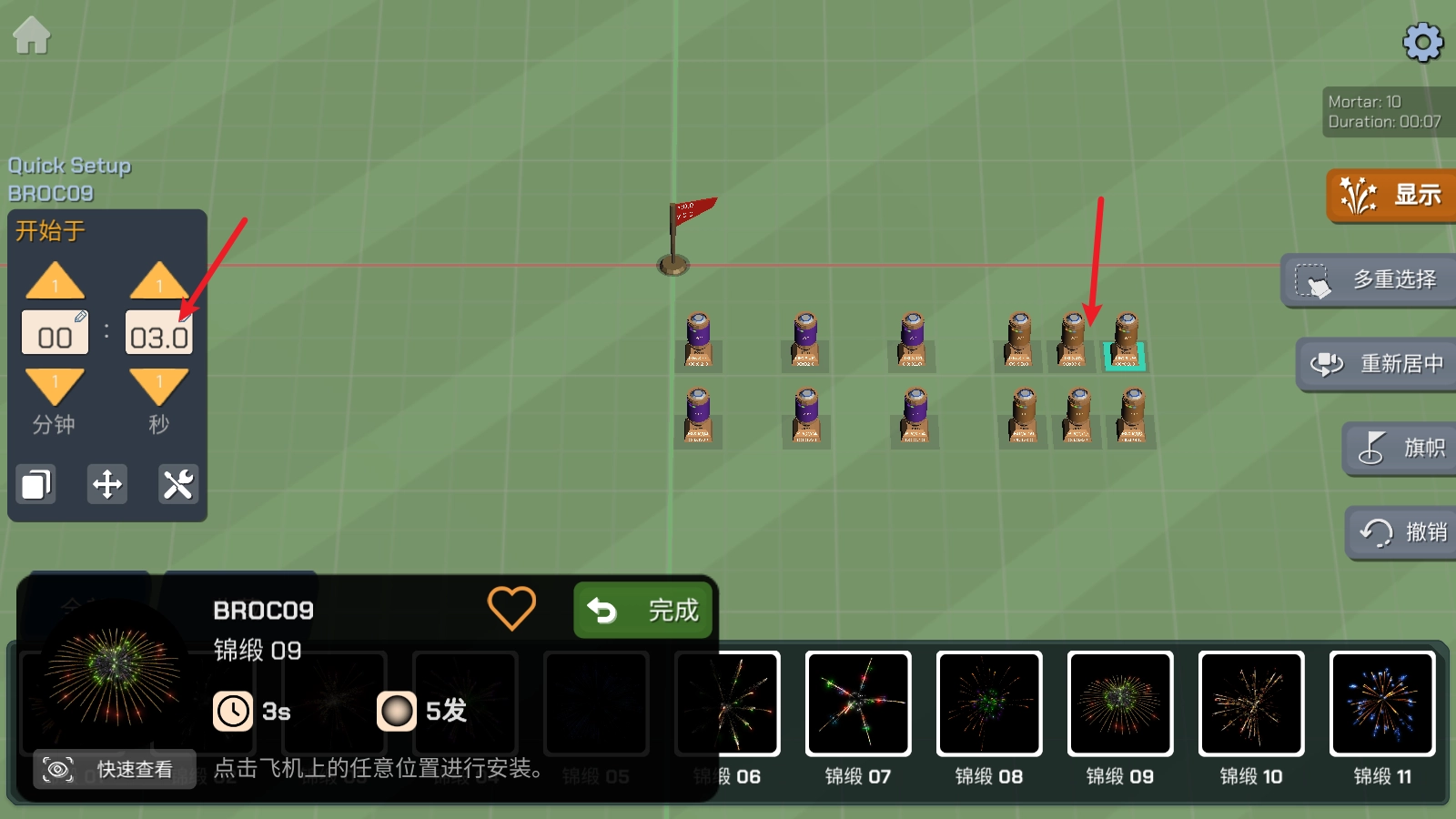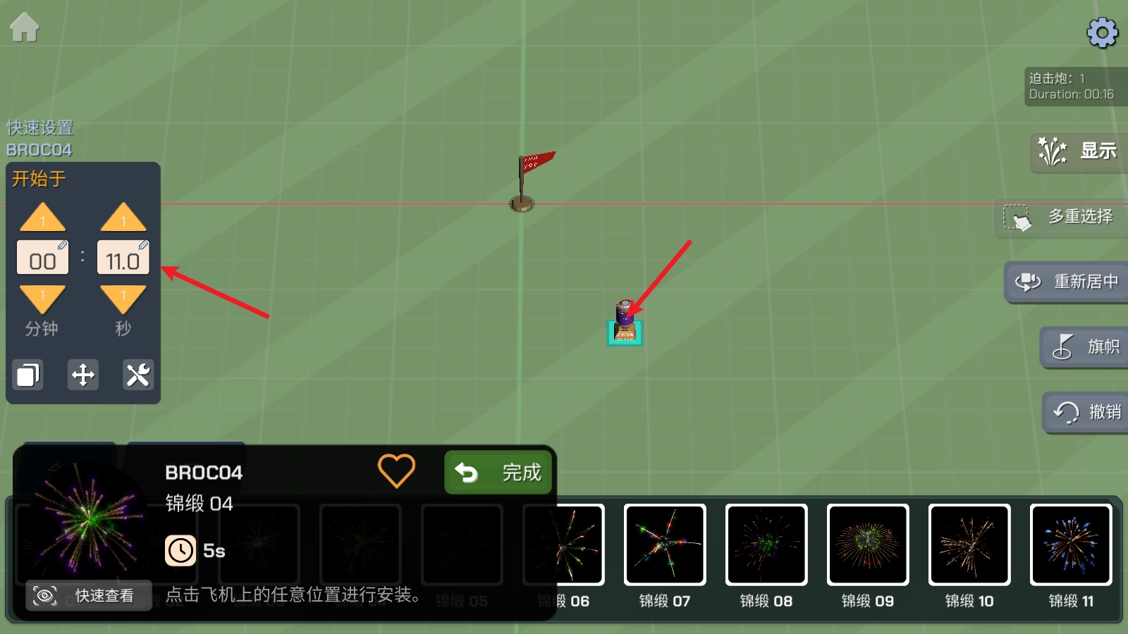 3、接着点击地图就能把对应的烟花放置好,之后再设置一下它的燃放时间