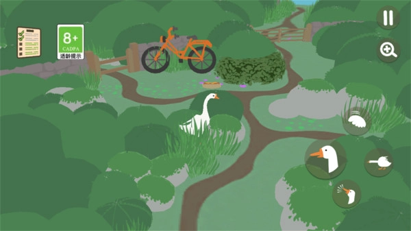 在农场与村庄里自由探索,借助大鹅的喙部动作和灵活走位,与人类、各类物品展开互动式的趣味恶搞。
