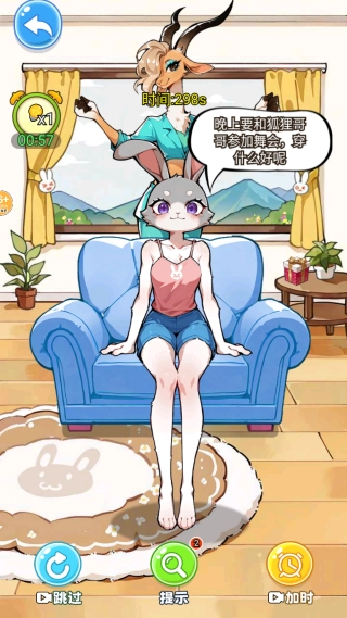1、点击“开始游戏”进入关卡,依据当前主题任务,清晰了解兔子需要的穿搭风格以及场景适配条件。