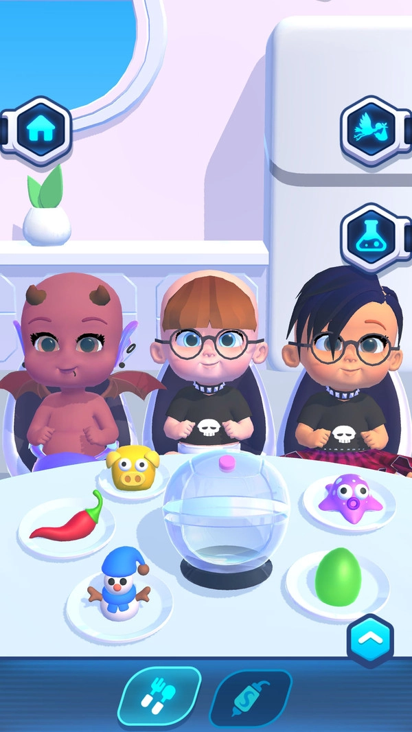 游戏的核心玩法围绕魔法锅展开,玩家需要把不同组件放进锅里,通过融合得到姿态各异的宝宝,而且每次融合都会带来随机的惊喜。