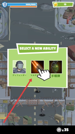 消灭一波僵尸后,在技能选择界面,点击マネチ即可理解为选择相关技能,以此强化战斗能力。