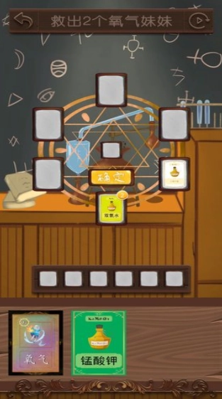 依据化学原理,把各种化学元素拖入合成框来完成合成操作。比如像O₂+H₂=H₂O这样的反应,只有把场景里所有的空气组成部分都完成组合,才能顺利通过这一关卡。