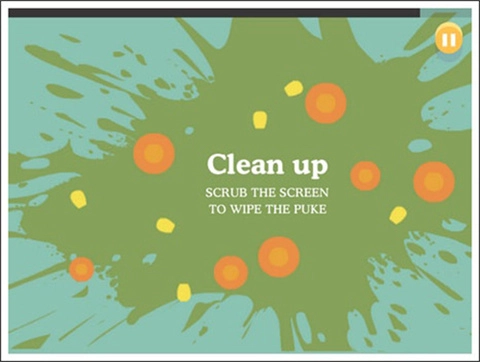 吃了一块放了两周都没进冰箱的派,结果因为食物中毒上吐下泻,最后不幸离世。玩家得用手在屏幕上滑动,把呕吐物清理掉。