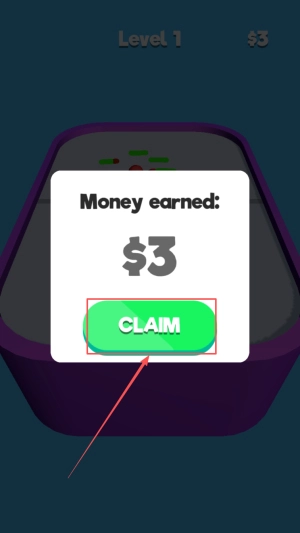 4.胜利收获:当屏幕上出现“Money earned: $3”的提示时,点击“CLAIM”按钮领取奖励,随后进入下一关。