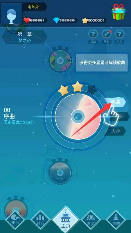 这是一种与经典模式和闯关模式核心玩法不同的模式,玩家进入“星动模式”后,能够依据不同圆形音符下落的位置和轨迹进行点触滑动,趣味性更为丰富。