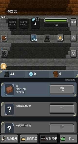 1、购买动力提升能助力壮大你的矿业,点击画面,开采分身术就会得到提升;